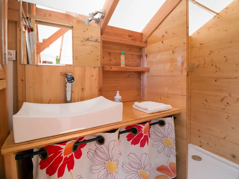 Le confort d'une cabane en bois tout en vivant à l'extérieur comme au camping ! Les équipements et le mobilier sont parfaits.